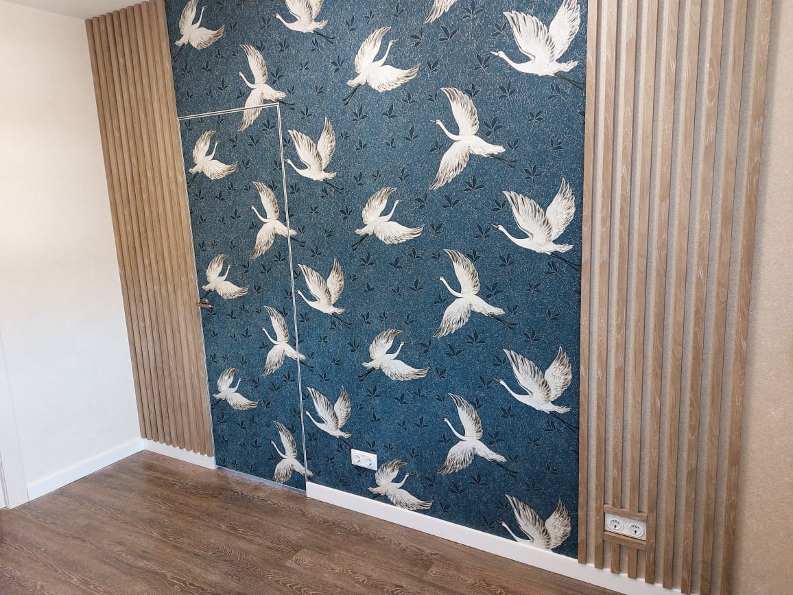 • Для изготовления полотна используется специальный материал, оптимальный под покраску, оклейку обоями и даже отделку декоративной штукатуркой. При умелой отделке дверь станет невидимой и полностью сольется со стенами.