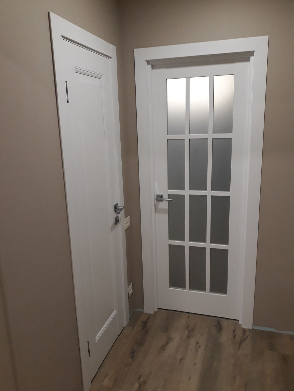 • В нишу между помещениями устанавливается дверная коробка. Она является каркасом, который удерживает полотно на весу и обеспечивает плотное прилегание двери к стене.