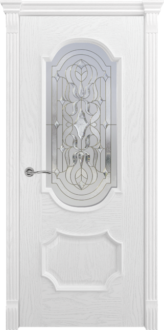 Дверь Женева Ясень бланко, витраж «Палермо» из Шпона (Dariano) в с установкой и доставкой